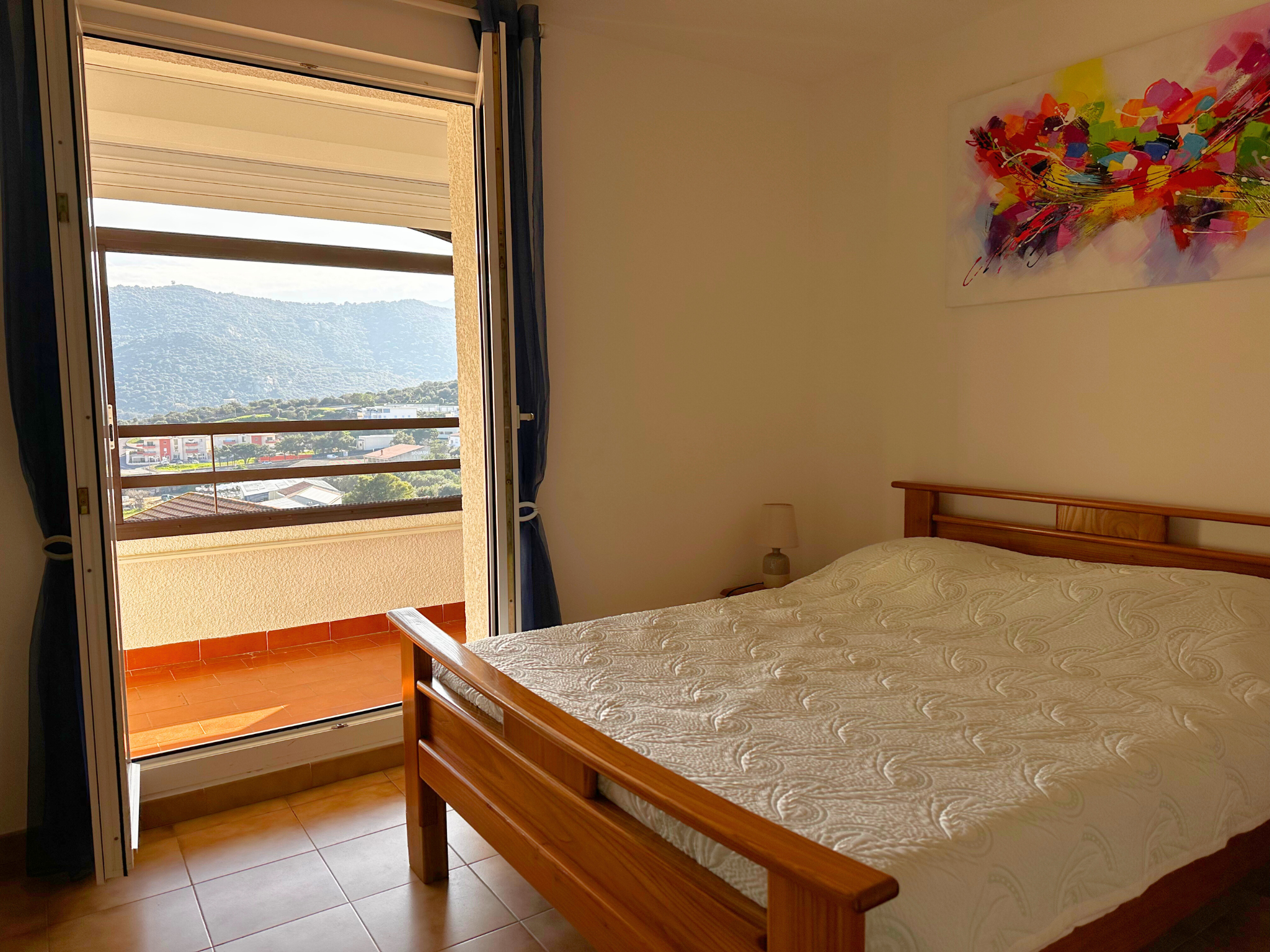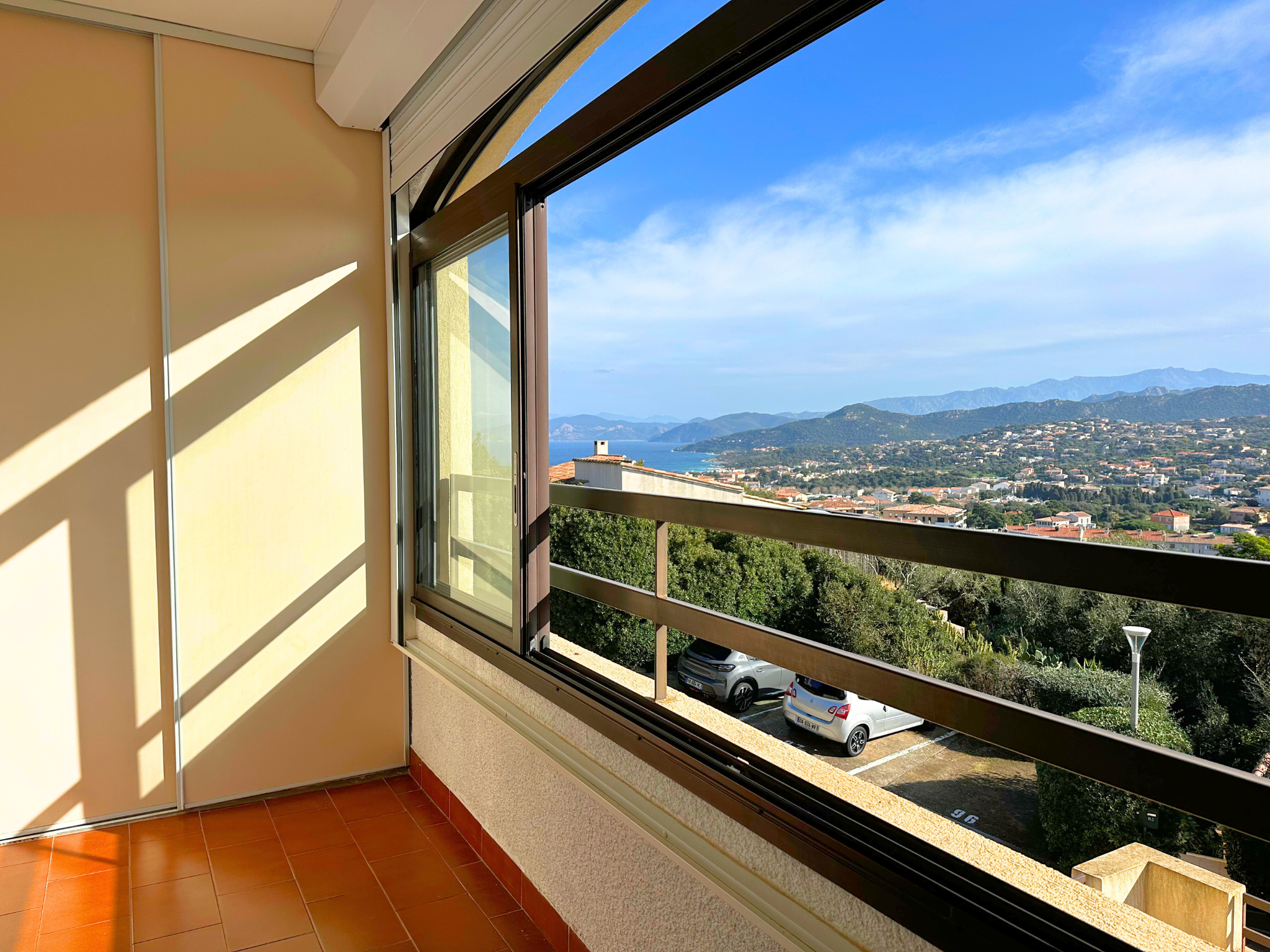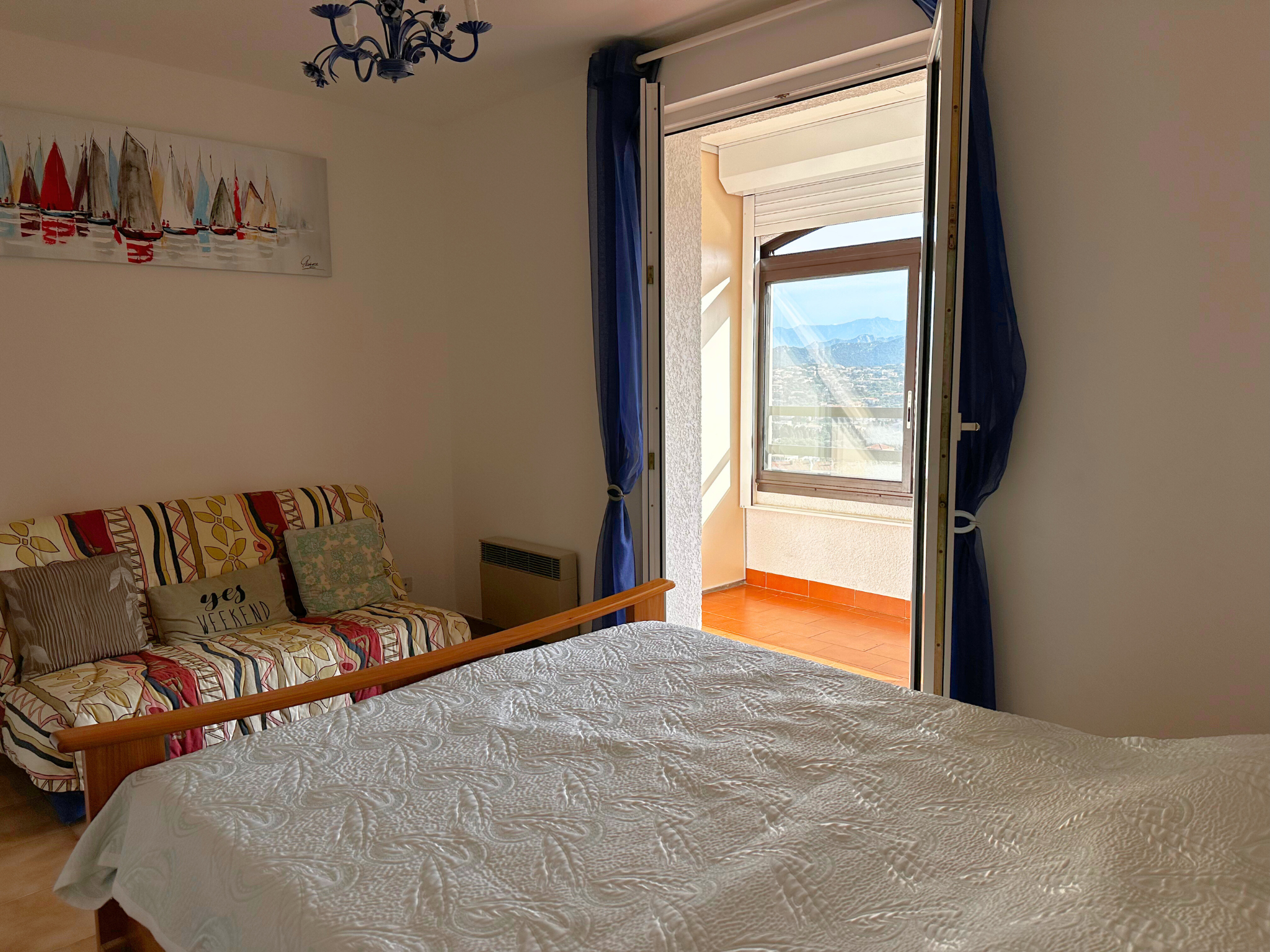 1 Chambre ouvrant sur une loggia fermée d'environ 6m2 avec vue sur les montagnes et la mer