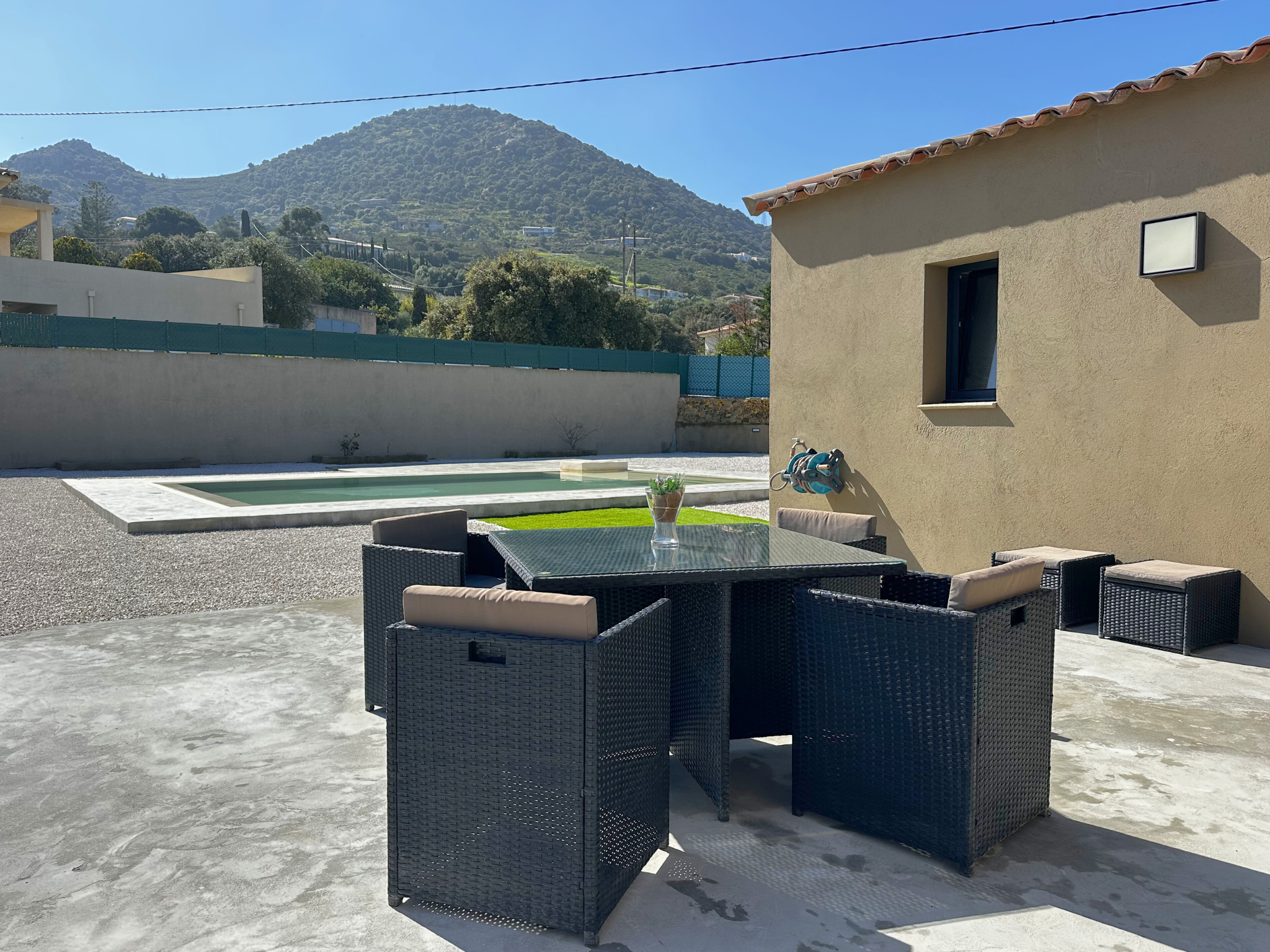 Sur la commune de Monticello, à 5 min de L'Ile-Rousse, belle villa T5 de plain-pied d'environ 152m2, avec piscine et double garage.
